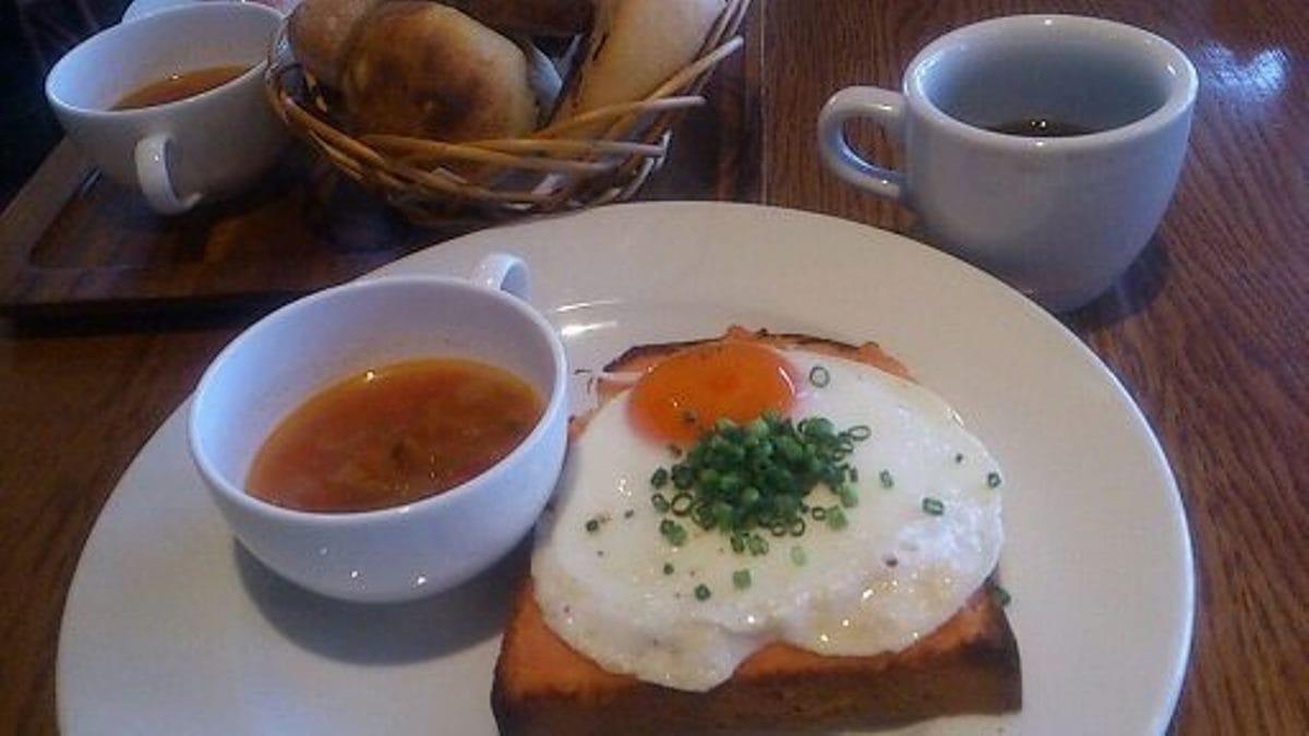 - モーニングプレート 1100円(トースト、サラダ、ベーコン、ドリンク等)