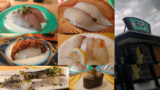 - 回転寿司一皿 297円- 本鮪赤身、活あじ、真鯛、えんがわ、ほたて