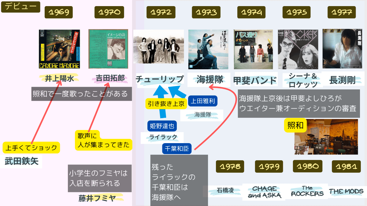 ライブ喫茶 照和出身のアーティストのデビューと相関図